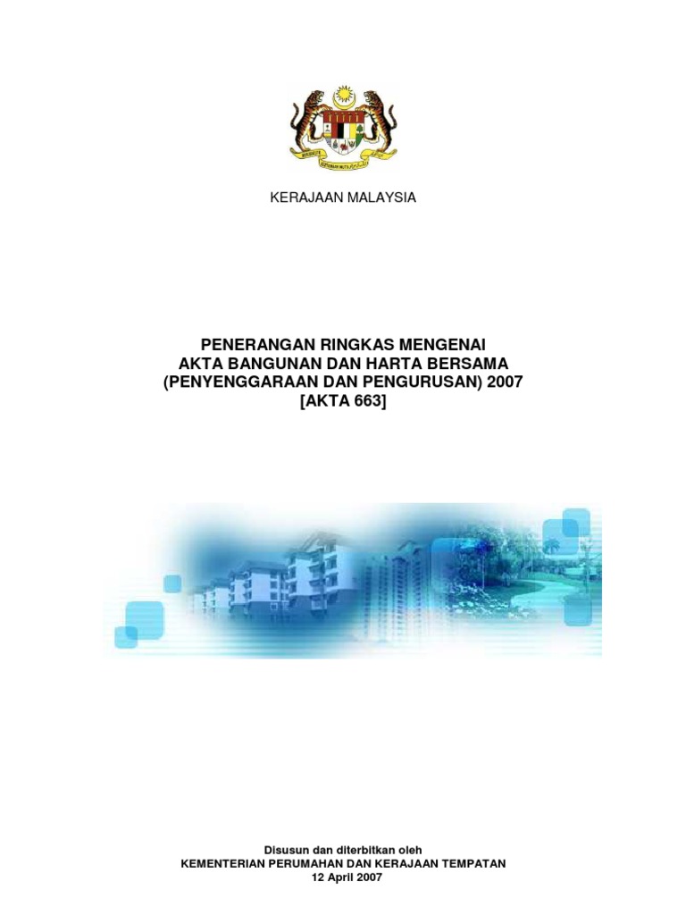 Akta Bangunan Dan Harta Bersama / Secara umum bahan bangunan dan material bangunan ini biasanya digunakan sebagai bahan utama untuk membangun rumah tinggal, gedung pertokoan, pembuatan gedung perkantoran, ataupun pekerjaan proyek bangunan konstruksi lainnya.. Memberi khidmat nasihat kepada pemaju jmb / mc berkaitan penyenggaraan dan pengurusan harta bersama. Akta bangunan dan harta bersama (penyenggaraan dan pengurusan) 2007 atau dikenali juga sebagai akta 663 telah (a) untuk menyenggarakan harta bersama dengan sempurna dan menjaga harta bersama itu dalam keadaan yang baik dan pembaikan yang dapat digunakan Inilah yang disebut sebagai harta bersama. Menjaga perlaksanaan akta bangunan dan harta bersama (akta 663) dan bahagian vi dan vii akta hakmilik strata (akta 318). Bangunan dan harta bersama ini perlu disenggara dan diurus dengan sempurna.
