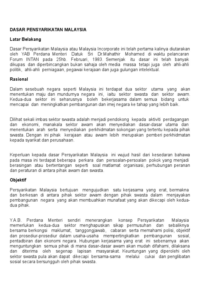 Teras utama dasar luar malaysia adalah untuk melindungi kedaulatan dan kepentingan negara serta untuk menyumbang secara bermakna ke arah masyarakat dunia yang adil dan saksama melalui perhubungan diplomasi yang effektif. Ada negara bagian yang dikepalai oleh keturunan bangsawan sebanyak 4 negra dan sembilan negara bagian lainnya dikepalai oleh sultan. Ringkasan eksekutif dasar belia malaysia. Latar belakang dasar luar malaysia. Antara rasional utama dasar tersebut dilaksanakan adalah untuk :