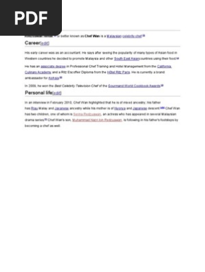 Related : Muhammad Nazri Bin Redzuawan - Around the world (2003) and chef wan's sweet treats (2000) ● the parents of chef wan are noraini abdullah, ismail md nor ● he had 2 children serina redzuawan..