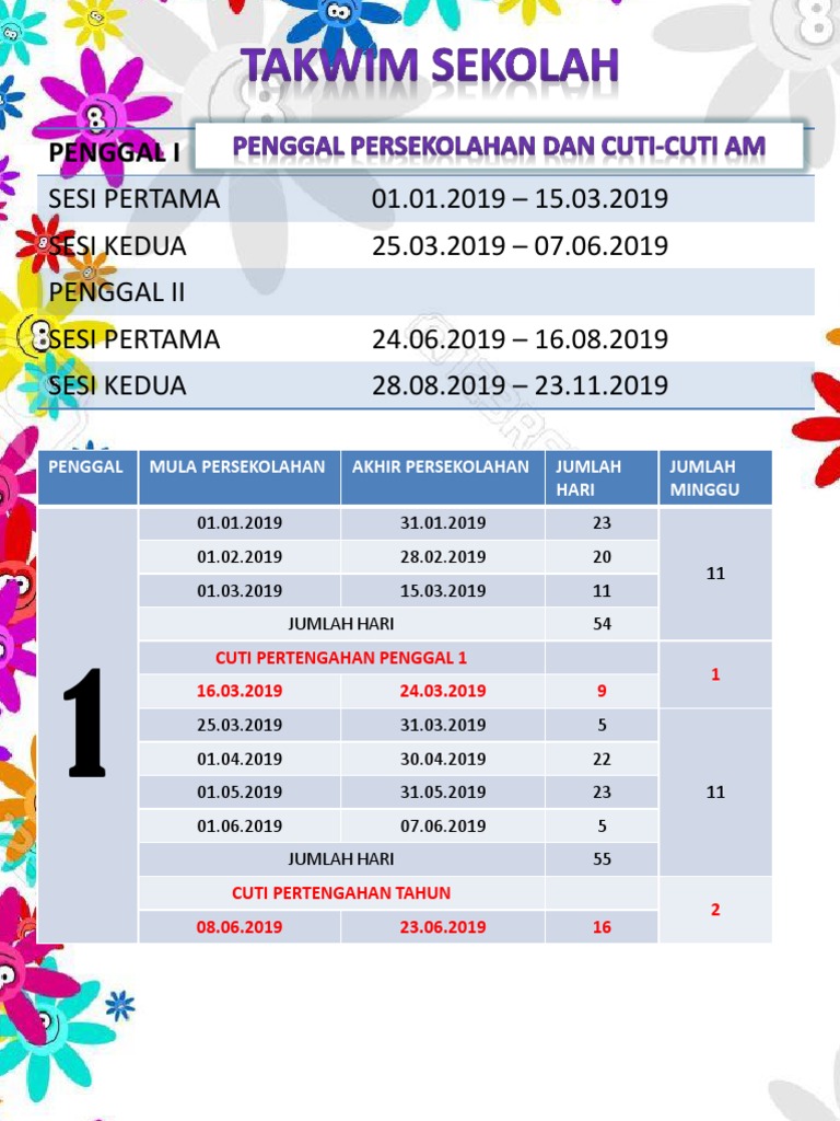 Untuk lebih lanjut, kalendar takwim penggal persekolahan 2019 ini boleh di muat turun di laman rasmi kementerian pelajaran malaysia (kpm), pautan disediakan di bawah Ujian segak program penilaian standard kecergasan fizikal kebangsaan untuk murid sekolah malaysia ( segak ) ini telah dirancang selari dengan sukatan. Perhatian buat ibu bapa dan pelajar yang ingin ketahui jadual cuti sekolah di seluruh brunei darussalam tahun 2021. ○ penggal kedua persekolahan : Cuti am dan penggal persekolahan 2019. Berikut adalah takwim cuti persekolahan dan juga cuti perayaan untuk tahun 2019 yang telah diumumkan oleh kementerian pendidikan malaysia. Disamping cuti penggal dan cuti pertengahan & akhir tahun, sekolah juga diperuntukkan cuti perayaan oleh kpm. Cuti am dan penggal persekolahan. Perayaan tarikh hari tahun baru 01.01.2019 tahun baru cina 5 & 6.02.2019 hari thaipusam* 21.01.2019 hari wilayah persekutuan 01.02.2019 hari perayaan pekerja. Cuti sekolah 1 dis 2019 1 jan 2020 penggal 3 (ahad) (rabu). 307 x 416 png 22 кб. Jadual takwim dan cuti persekolahan 2019 ini adalah jadual seperti di dalam pekeliling kementerian pendidikan malaysia. Cuti pertengahan penggal 3 :